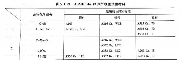 5. ASME B16.47大外徑管法蘭材料(liao)見表5.1.21,法蘭蓋除可用鋼板外還可用所列鍛(duan)件材料(liao)鑄(zhu)造或鍛(duan)造。