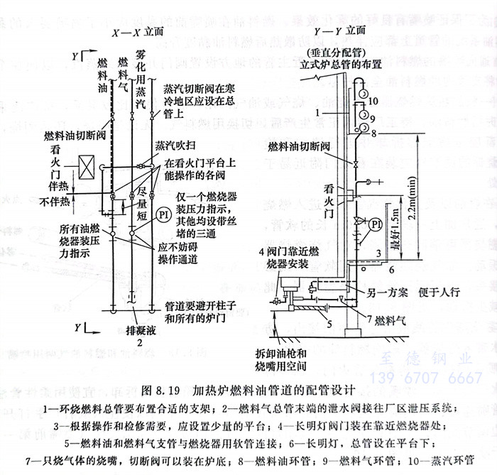 ①. 燃(ran)料(liao)(liao)油系統管(guan)道(dao)要設循(xun)環管(guan),燃(ran)料(liao)(liao)油管(guan)道(dao)一般來自主(zhu)(zhu)(zhu)管(guan)廊,繞(rao)加熱爐一周(zhou)再(zai)返回主(zhu)(zhu)(zhu)管(guan)廊,在主(zhu)(zhu)(zhu)管(guan)架(jia)上有燃(ran)料(liao)(liao)油來回的(de)(de)管(guan)道(dao)。在噴嘴的(de)(de)燃(ran)料(liao)(liao)油管(guan)由燃(ran)料(liao)(liao)油主(zhu)(zhu)(zhu)管(guan)的(de)(de)側面(mian)或下部(bu)引出。