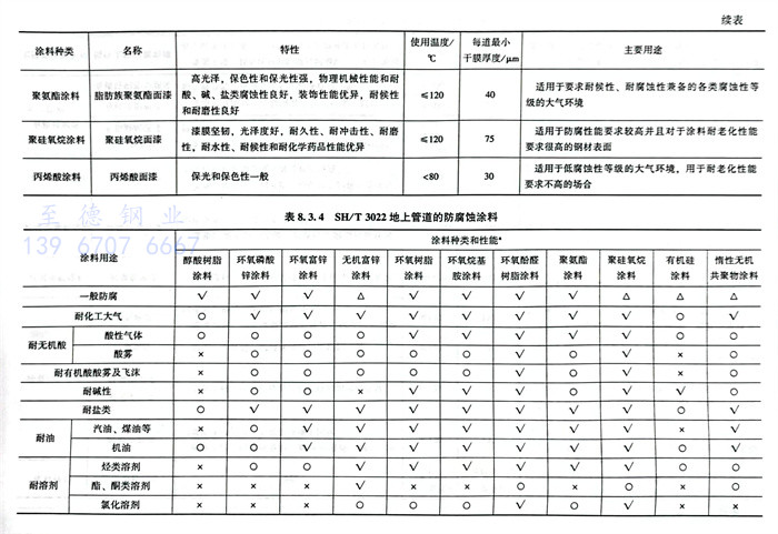 (1)SH/T 3022地(di)上管(guan)道的防(fang)腐(fu)蝕涂料(liao)見表8.3.4。