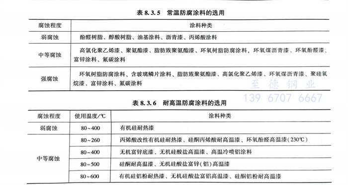 (3)防腐蝕常用涂料的性能及用途見(jian)表8.3.5和(he)表8.3.6。