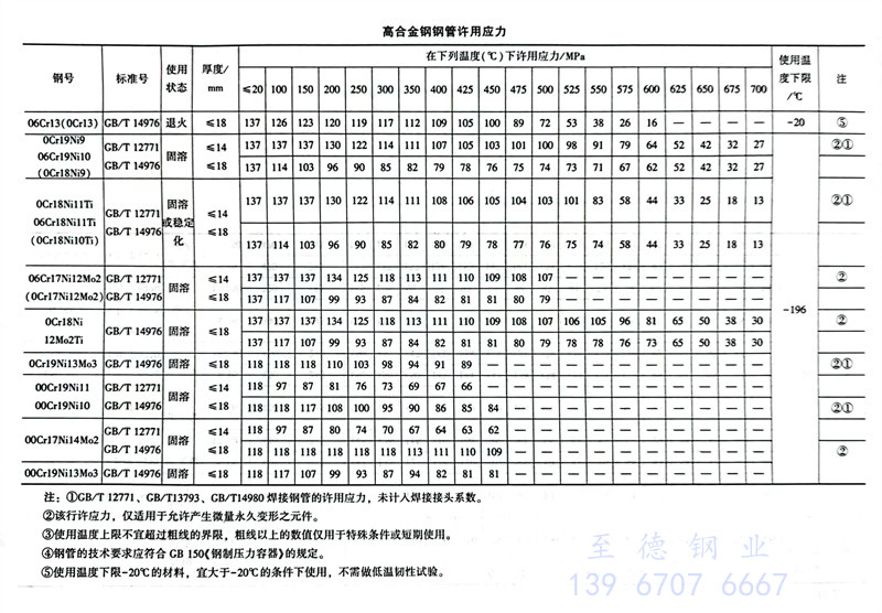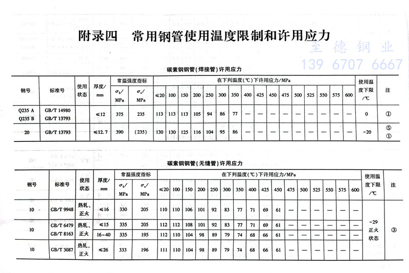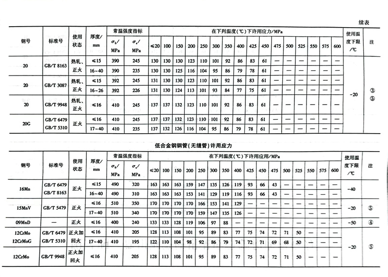 常用(yong)鋼管使用(yong)溫度限制和許用(yong)應(ying)力參照表