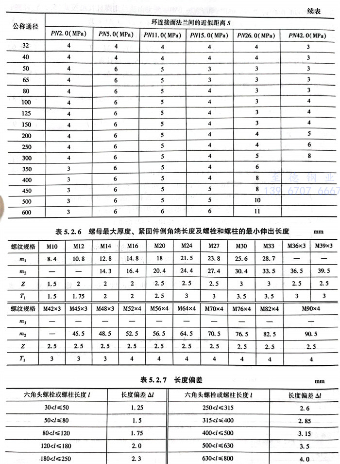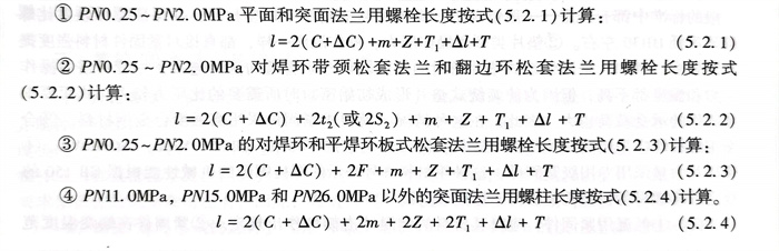 ①. PN0.25~PN2.0MPa平面和突面法蘭用螺栓長度按式(5.2.1)計(ji)算:PNO.25~PN2.0