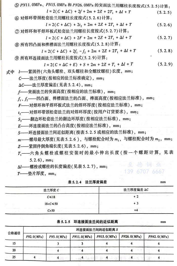 ④. PN15.0MPa和PN26.0MPa以外的突面(mian)法蘭用螺柱(zhu)長度按式(shi)5.2.4)計算。