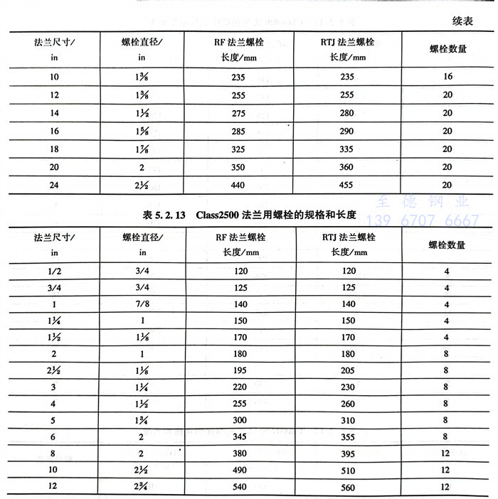 表5.2.9~表5.2.13備注:1螺(luo)柱長(chang)(chang)(chang)(chang)度的尺寸公差:長(chang)(chang)(chang)(chang)度≤12in,±1.6mm;長(chang)(chang)(chang)(chang)度>12in而≤18in,±3.2mm;長(chang)(chang)(chang)(chang)度>18in,±6.4mm。2螺(luo)柱的長(chang)(chang)(chang)(chang)度不包括端部倒(dao)角螺(luo)紋的長(chang)(chang)(chang)(chang)度。