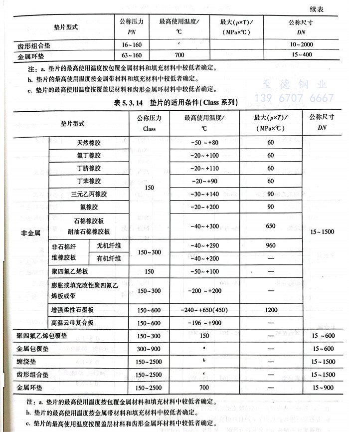 f. 齒形(xing)組合墊根據金屬齒形(xing)環和(he)覆蓋層(ceng)材料的不同組合,使用溫(wen)度范圍不同,詳見(jian)HG/T 20611,