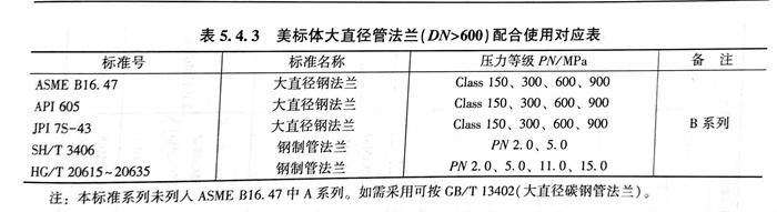 管法蘭配合使用對應表見表5.4.2和表5.4.3,包含連接尺寸、密封面尺寸的配合使用。