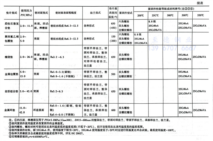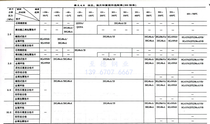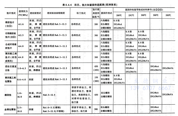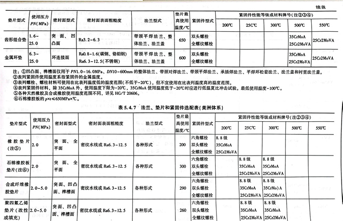 法蘭、墊片和緊(jin)固件選配表(biao)見表(biao)5.4.6~表(biao)5.4.8。