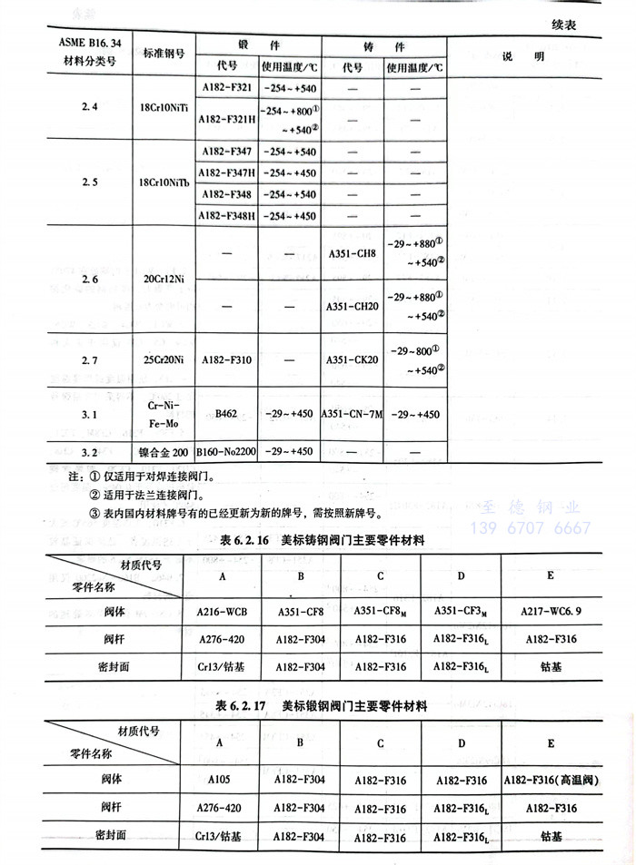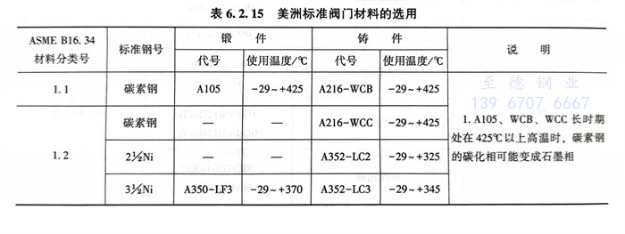 美洲標準閥門材料的選(xuan)用(yong)見(jian)表(biao) 6.2.15~表(biao) 6.2.18