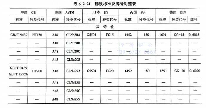 1. 鑄鐵(tie)標準(zhun)及牌號對照見(jian)表6.2.21。