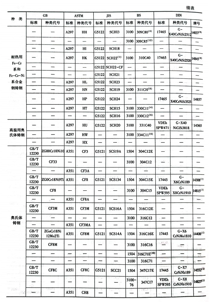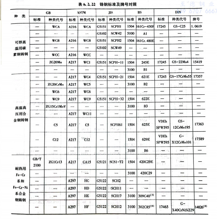 2. 鑄鋼標準及牌號對照見表6.2.22。