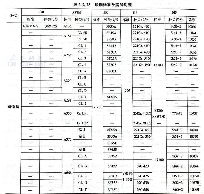 3. 鍛鋼標準及(ji)牌號(hao)對(dui)照見表6.2.23。