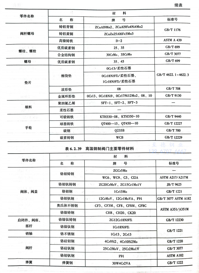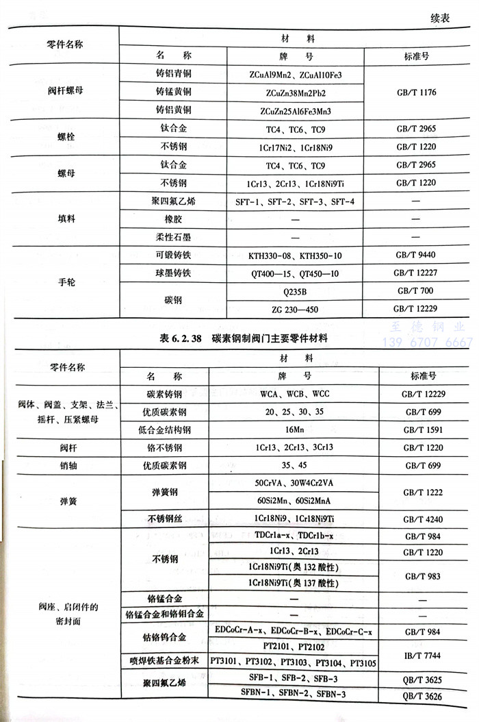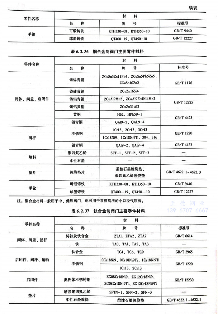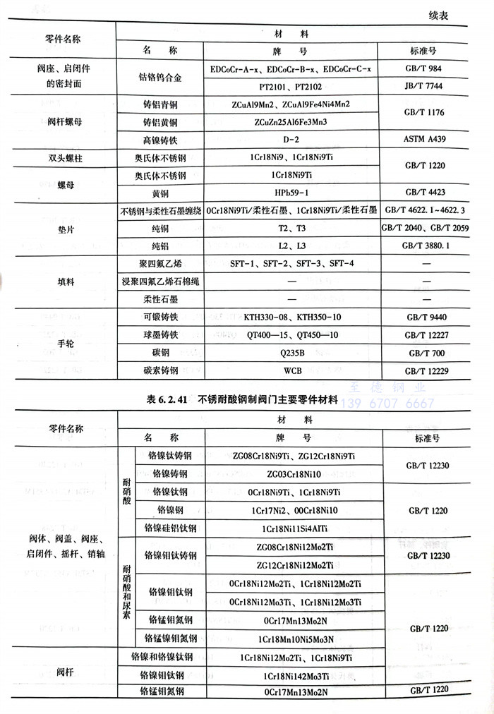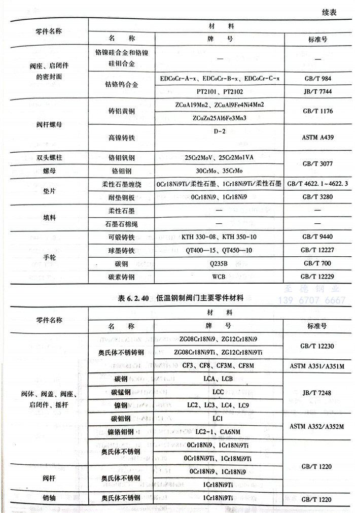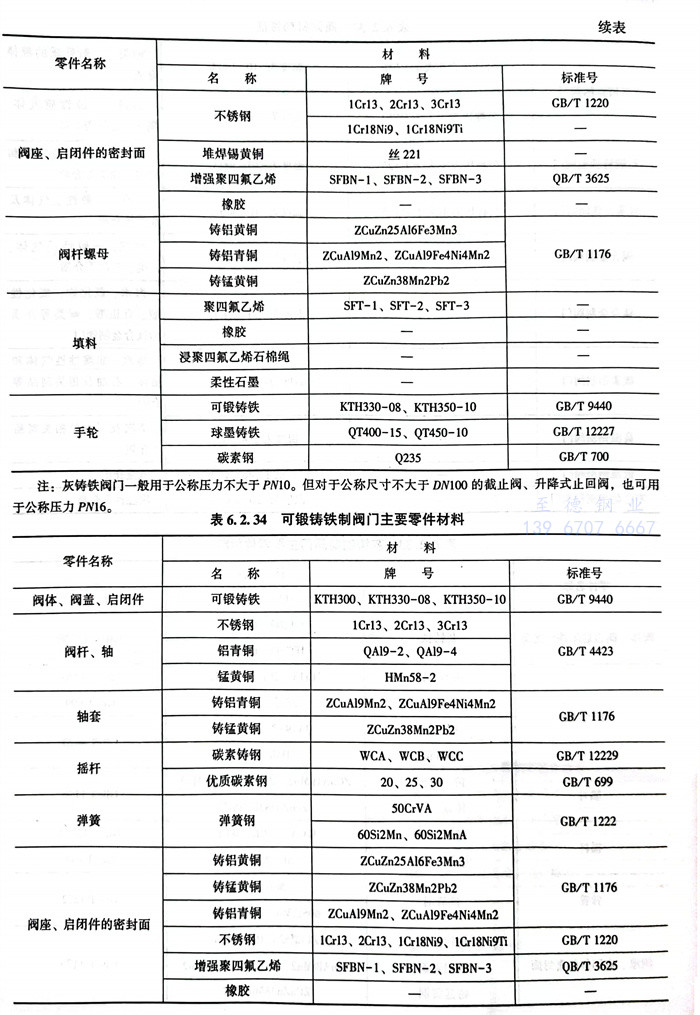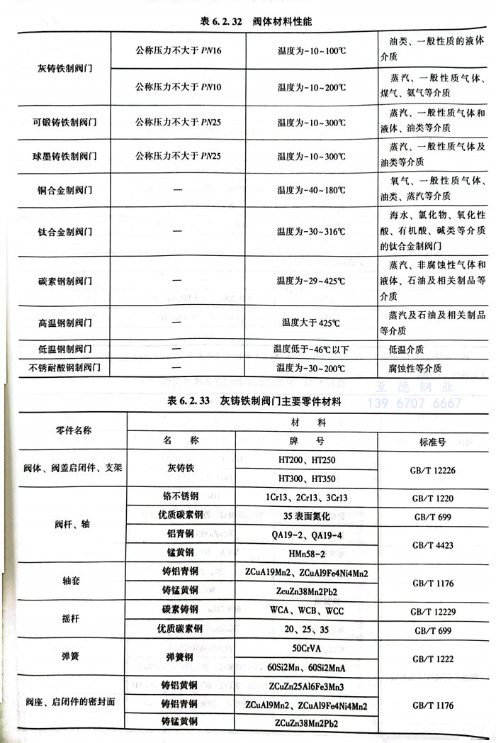 常(chang)用(yong)閥體(ti)材料的選用(yong)主要依據JB/T5300。見表6.2.32~表6.2.42。