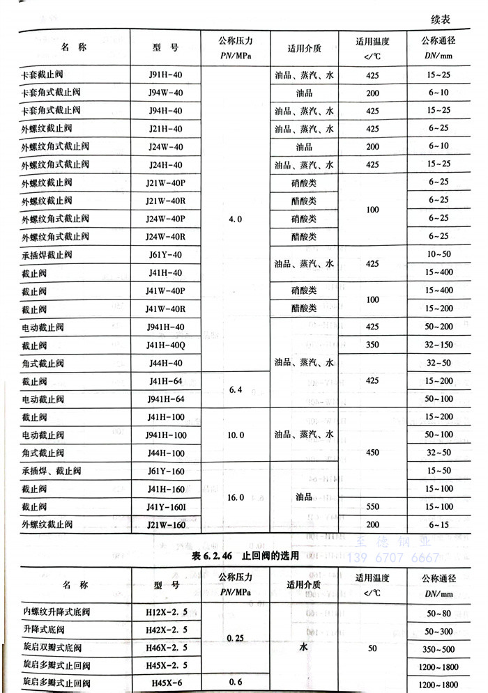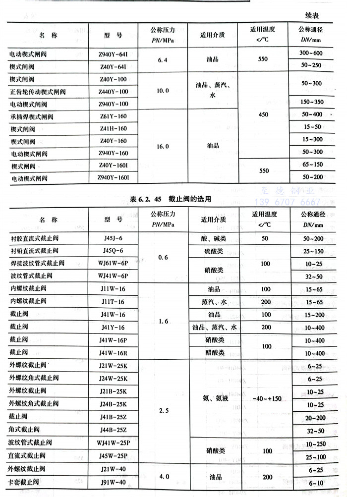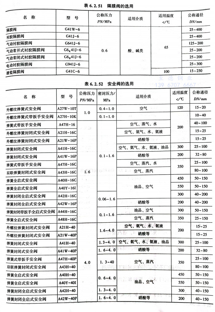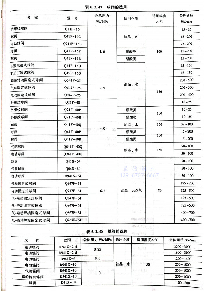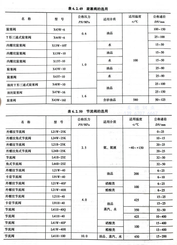 4. 閘閥、截(jie)止閥、止回閥、球閥、蝶閥、旋塞閥、節(jie)流(liu)閥、隔(ge)膜(mo)閥、安(an)全閥的選用,見表(biao)6.2.44~表(biao)6.2.52。
