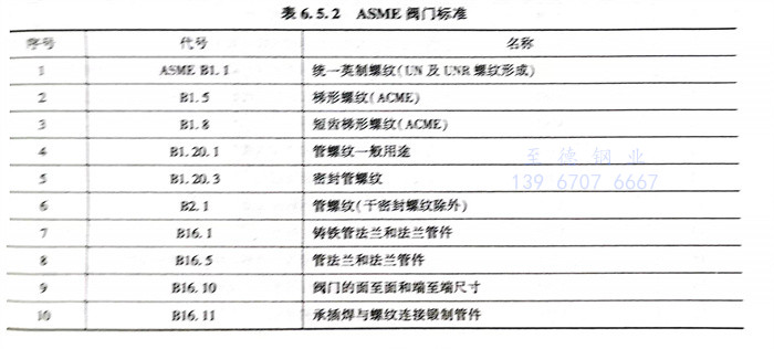 美國機械工程師(shi)協會 ASME 閥門標準見表6.5.2。