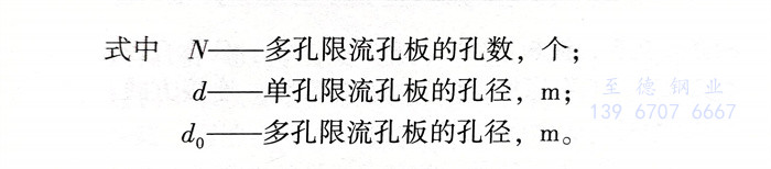 管(guan)道公稱(cheng)直徑≤150mm的(de)管(guan)路,通常采用(yong)(yong)單(dan)(dan)孔(kong)(kong)孔(kong)(kong)板(ban)(ban)(ban);150mm時(shi),采用(yong)(yong)多孔(kong)(kong)孔(kong)(kong)板(ban)(ban)(ban)。多孔(kong)(kong)孔(kong)(kong)板(ban)(ban)(ban)的(de)孔(kong)(kong)徑(do),一般可選用(yong)(yong)12.5mm,20mm,25mm,40mm。在計算多孔(kong)(kong)孔(kong)(kong)板(ban)(ban)(ban)時(shi),首先按單(dan)(dan)孔(kong)(kong)孔(kong)(kong)板(ban)(ban)(ban)求出孔(kong)(kong)徑(d),然后按式(6.6.1)求取選用(yong)(yong)的(de)多孔(kong)(kong)孔(kong)(kong)板(ban)(ban)(ban)的(de)孔(kong)(kong)數(N)。