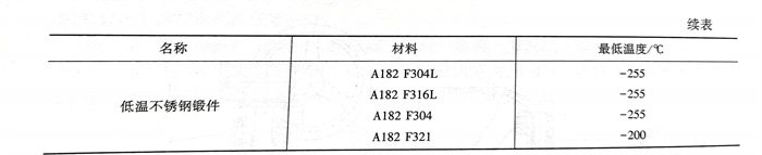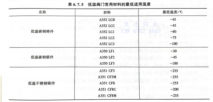 根據ASME B31.3低溫(wen)(wen)閥(fa)門常(chang)用(yong)材料(liao)的最低適(shi)用(yong)溫(wen)(wen)度見表(biao)6.7.5。