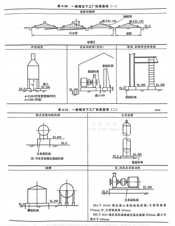 操作通道的布置和標高(gao)基準見表6-19~表6-21。