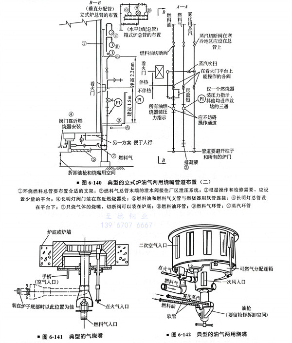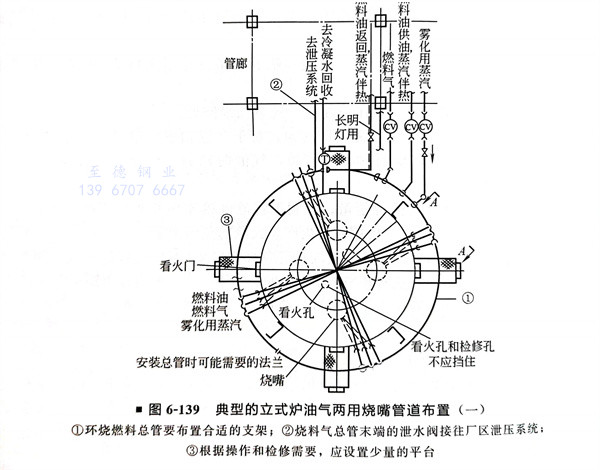 典型(xing)的立式爐油氣(qi)兩用(yong)燒嘴(zui)管道(dao)布置如(ru)圖6-139、圖6-140所示。典型(xing)的氣(qi)燒嘴(zui)如(ru)圖6-141所示。典型(xing)的油氣(qi)兩用(yong)燒嘴(zui)如(ru)圖6-142所示。