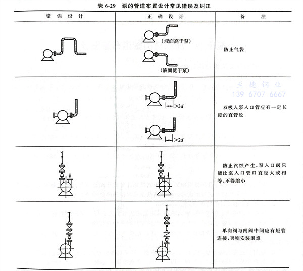 泵的管(guan)道(dao)布置設計常見錯誤及(ji)糾正見表6-29。