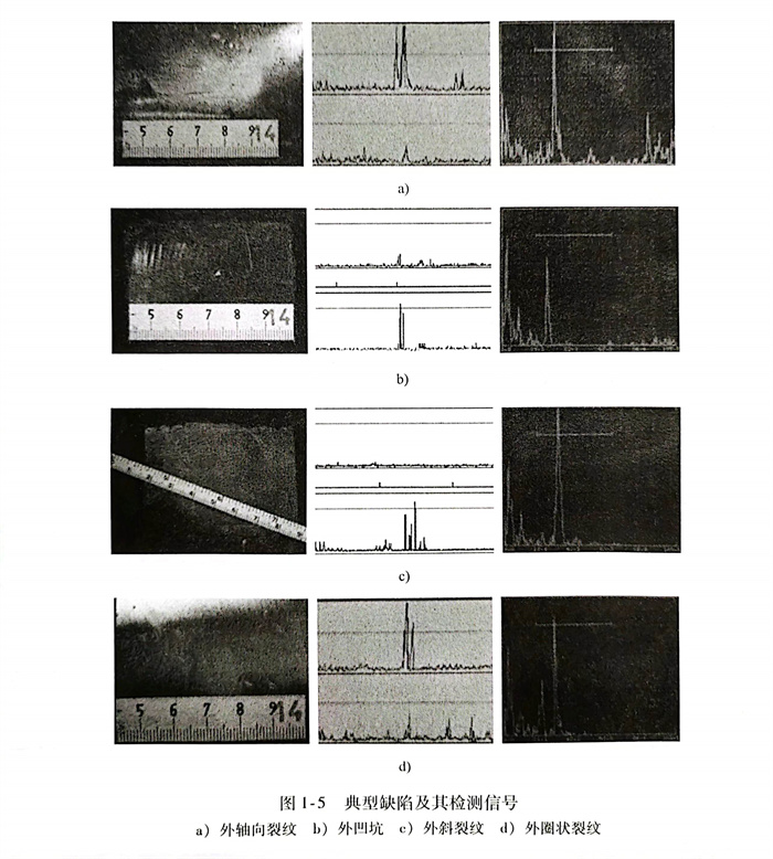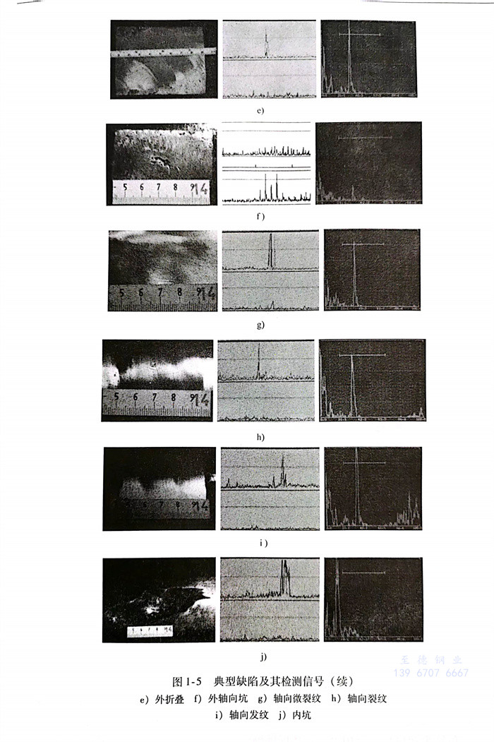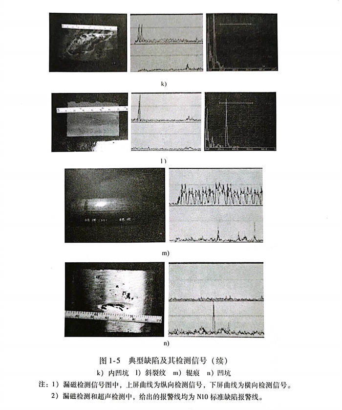 為直觀體現,圖(tu)1-5給出了不銹鋼管檢(jian)測(ce)過(guo)(guo)程(cheng)中出現過(guo)(guo)的(de)(de)多(duo)(duo)種缺陷(裂紋、缺失)以(yi)及相應的(de)(de)漏磁檢(jian)測(ce)信(xin)號(hao)和超聲檢(jian)測(ce)信(xin)號(hao),從中能夠(gou)了解自然缺陷的(de)(de)多(duo)(duo)樣性和不同檢(jian)測(ce)方法的(de)(de)敏感差異(yi)。