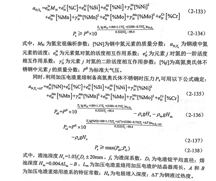然而,壓(ya)力過高將會加速設備(bei)損耗(hao),提(ti)高生(sheng)產成(cheng)本且易引(yin)發生(sheng)產事故,影響生(sheng)產的安(an)全和(he)順利(li)(li)運行(xing)。因此,利(li)(li)用(yong)加壓(ya)冶金(jin)技術制(zhi)備(bei)高氮奧氏體不(bu)(bu)銹鋼過程中,需要合理地控制(zhi)壓(ya)力。利(li)(li)用(yong)加壓(ya)感應爐制(zhi)備(bei)高氮奧氏體不(bu)(bu)銹鋼時,壓(ya)力P6可用(yong)以(yi)下公式確(que)定: