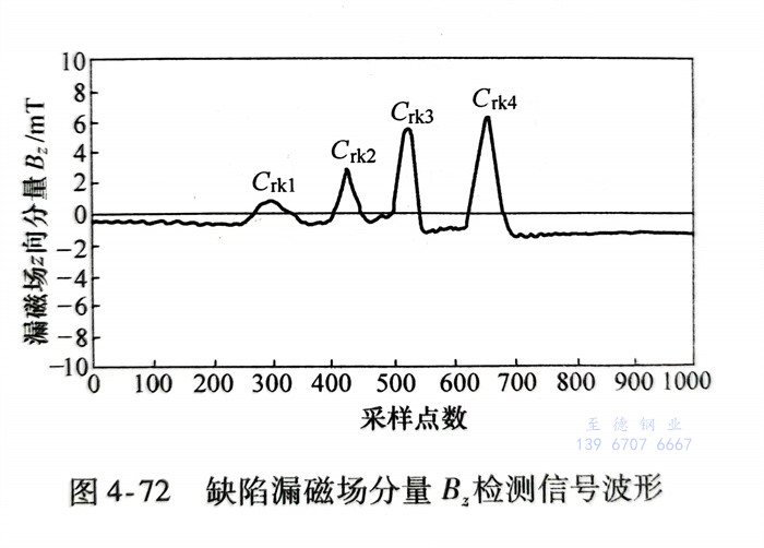 從圖4-81中可以(yi)看出,按不同方(fang)(fang)(fang)向布置的(de)水平(ping)(ping)線(xian)圈產生了不同的(de)漏磁(ci)信(xin)(xin)號(hao)(hao)幅(fu)值(zhi)(zhi)輸出:當(dang)水平(ping)(ping)線(xian)圈以(yi)90°方(fang)(fang)(fang)向依(yi)次掃過(guo)四個(ge)缺(que)陷時,檢測(ce)信(xin)(xin)號(hao)(hao)依(yi)次減小(xiao),其(qi)中Ckt缺(que)陷信(xin)(xin)號(hao)(hao)幅(fu)值(zhi)(zhi)最大,4缺(que)陷信(xin)(xin)號(hao)(hao)幅(fu)值(zhi)(zhi)最小(xiao);當(dang)水平(ping)(ping)線(xian)圈以(yi)70°方(fang)(fang)(fang)向依(yi)次掃過(guo)四個(ge)缺(que)陷時,Ck2缺(que)陷信(xin)(xin)號(hao)(hao)幅(fu)值(zhi)(zhi)最大,信(xin)(xin)號(hao)(hao)幅(fu)值(zhi)(zhi)次之(zhi),然后依(yi)次為(wei)Crk3和C,k4當(dang)水平(ping)(ping)線(xian)圈以(yi)45°方(fang)(fang)(fang)向依(yi)次掃過(guo)四個(ge)缺(que)陷時,Ck3缺(que)陷信(xin)(xin)號(hao)(hao)幅(fu)值(zhi)(zhi)明(ming)顯增加(jia),C,k4信(xin)(xin)號(hao)(hao)幅(fu)值(zhi)(zhi)有(you)所增加(jia),而Cukl和Ck2信(xin)(xin)號(hao)(hao)幅(fu)值(zhi)(zhi)均降低(di);當(dang)水平(ping)(ping)線(xian)圈以(yi)20°方(fang)(fang)(fang)向依(yi)次掃過(guo)四個(ge)缺(que)陷時,Ck4缺(que)陷信(xin)(xin)號(hao)(hao)幅(fu)值(zhi)(zhi)增加(jia),其(qi)余三個(ge)缺(que)陷信(xin)(xin)號(hao)(hao)幅(fu)值(zhi)(zhi)都降低(di),而且C,k1Crk2和C,k3信(xin)(xin)號(hao)(hao)幅(fu)值(zhi)(zhi)依(yi)次由(you)小(xiao)到大排列(lie)。