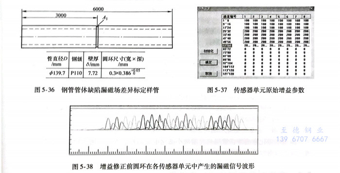 在基(ji)于(yu)陣(zhen)列傳(chuan)感(gan)單(dan)(dan)(dan)元(yuan)(yuan)增益修正(zheng)的管(guan)(guan)體漏(lou)(lou)磁場差(cha)(cha)異(yi)消除(chu)方(fang)法中,刻制有(you)標定(ding)圓(yuan)環的鋼(gang)管(guan)(guan)以穩定(ding)速度(du)通過(guo)檢測探頭時(shi),標定(ding)信(xin)號源具有(you)單(dan)(dan)(dan)一性并能夠一次性遍歷每個傳(chuan)感(gan)器(qi)(qi)單(dan)(dan)(dan)元(yuan)(yuan)。由(you)于(yu)感(gan)生(sheng)(sheng)渦流磁場的作用(yong)(yong)使得管(guan)(guan)體形成了非均勻(yun)的磁感(gan)應強(qiang)度(du),從而(er)導致圓(yuan)環在經過(guo)不同(tong)傳(chuan)感(gan)器(qi)(qi)單(dan)(dan)(dan)元(yuan)(yuan)時(shi)產生(sheng)(sheng)的漏(lou)(lou)磁信(xin)號幅值(zhi)存在差(cha)(cha)異(yi)。在對自然管(guan)(guan)進(jin)行檢測之前(qian),先利(li)用(yong)(yong)帶有(you)標定(ding)圓(yuan)環的樣管(guan)(guan)對傳(chuan)感(gan)器(qi)(qi)單(dan)(dan)(dan)元(yuan)(yuan)增益進(jin)行修正(zheng),并且必須(xu)保證鋼(gang)管(guan)(guan)檢測速度(du)與標定(ding)速度(du)相同(tong)。最終,采用(yong)(yong)標定(ding)圓(yuan)環作為勵(li)磁源來修正(zheng)傳(chuan)感(gan)器(qi)(qi)單(dan)(dan)(dan)元(yuan)(yuan)的增益,可有(you)效消除(chu)同(tong)尺寸缺陷在管(guan)(guan)體不同(tong)位置處產生(sheng)(sheng)的檢測信(xin)號差(cha)(cha)異(yi)。