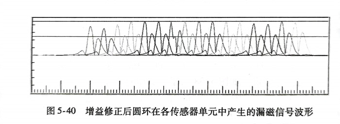 隨(sui)著檢測速度的(de)不(bu)斷提高,不(bu)銹鋼(gang)管離(li)(li)開區(qu)磁感應強(qiang)度逐漸大于進(jin)入區(qu),從而導(dao)致(zhi)位于離(li)(li)開區(qu)的(de)缺陷漏磁場強(qiang)度大于位于進(jin)入區(qu)的(de)缺陷漏磁場強(qiang)度,感(gan)(gan)生(sheng)磁(ci)(ci)場(chang)造成處于不(bu)(bu)同(tong)空間位置對應傳感(gan)(gan)器單元檢(jian)測到了不(bu)(bu)一(yi)致的(de)缺陷漏磁(ci)(ci)場(chang)信號(hao)。消除管體缺陷漏磁(ci)(ci)場(chang)差(cha)(cha)異有兩種(zhong)途(tu)徑:一(yi)方面,可(ke)以(yi)通過消除鋼管中的(de)感(gan)(gan)生(sheng)渦(wo)流來消除磁(ci)(ci)化(hua)狀態的(de)差(cha)(cha)異;另一(yi)方面,還可(ke)采取修正傳感(gan)(gan)單元的(de)增益使(shi)檢(jian)測信號(hao)達到一(yi)致。由于鋼管內產生(sheng)的(de)感(gan)(gan)生(sheng)渦(wo)流無(wu)法消除,為此(ci),提出通過修正陣列傳感(gan)(gan)單元增益來消除同(tong)尺(chi)寸缺陷產生(sheng)的(de)漏磁(ci)(ci)信號(hao)差(cha)(cha)異,如圖5-19所示(shi)。