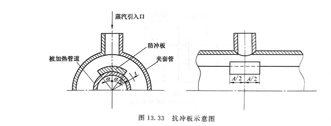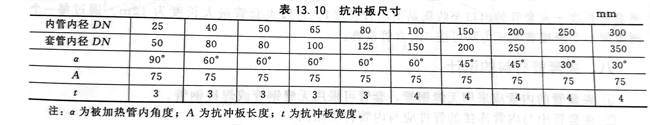 ④. 蒸汽壓力大于等于PN0.7MPa時,應在套管內蒸汽引入口(kou)處設抗沖(chong)板。抗沖(chong)板及其尺寸見圖13.33、表(biao)13.10。