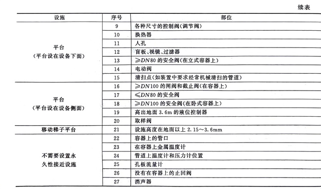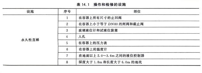 操作、檢修(xiu)用梯子、平(ping)臺、活動梯子平(ping)臺的設(she)計部(bu)位見表14.1。