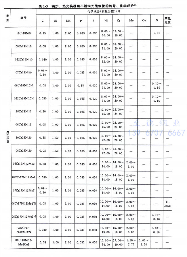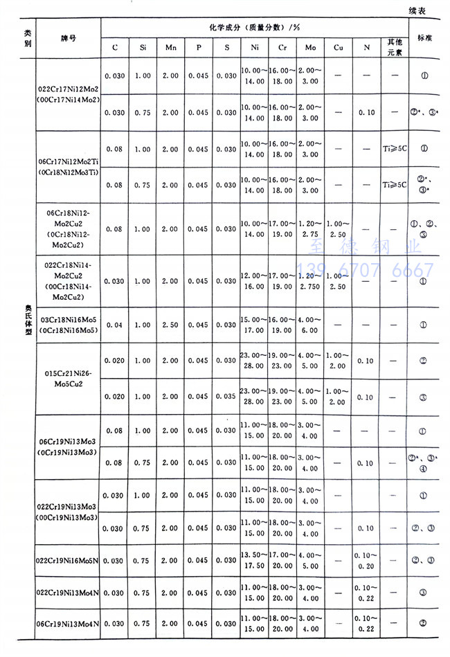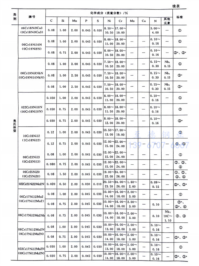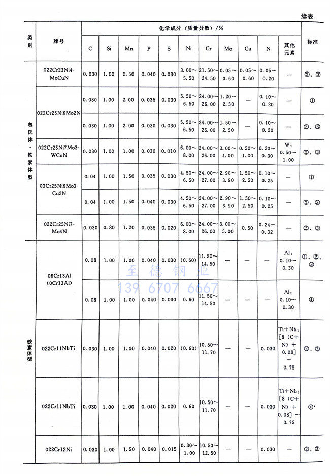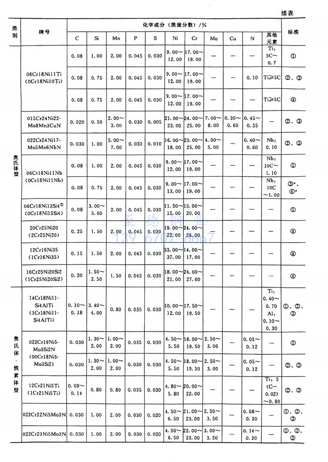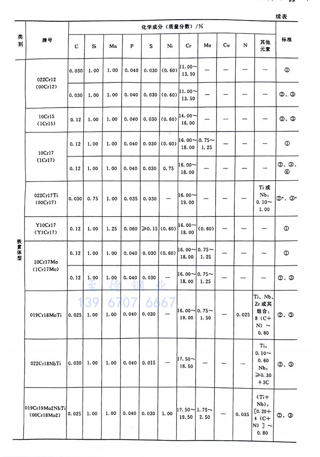 從表1-1~表1-6、表1-8可以看到,不銹鋼和耐熱鋼(gang)相互之間的許多牌號的化學成分、力學性能等是相同的,這些牌號的材料既可作為不銹鋼使用,也可作為耐熱鋼使用。