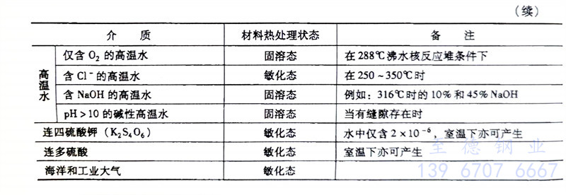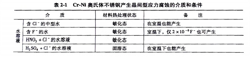 表(biao)2-1列(lie)出了引起(qi)Cr-Ni奧氏體不銹鋼(gang)腐(fu)蝕的介質(zhi)和條(tiao)件。