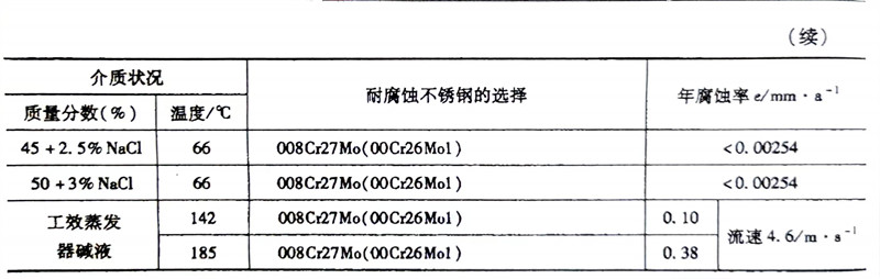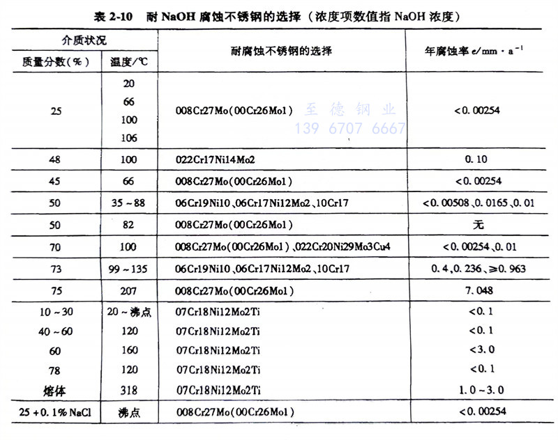 耐NaOH腐蝕不銹鋼的(de)選擇見表2-10。