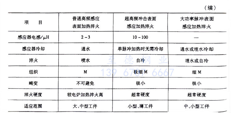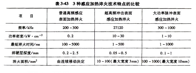 高(gao)頻感(gan)應(ying)加熱(re)(re)向著超(chao)高(gao)沖擊淬(cui)(cui)(cui)火和大功率脈沖感(gan)應(ying)加熱(re)(re)淬(cui)(cui)(cui)火的(de)方向發展。表(biao)(biao)3-43是普(pu)通高(gao)頻感(gan)應(ying)表(biao)(biao)面(mian)加熱(re)(re)淬(cui)(cui)(cui)火、超(chao)高(gao)頻沖擊表(biao)(biao)面(mian)感(gan)應(ying)加熱(re)(re)淬(cui)(cui)(cui)火、大功率脈沖表(biao)(biao)面(mian)感(gan)應(ying)加熱(re)(re)淬(cui)(cui)(cui)火的(de)技術(shu)特點比(bi)較。