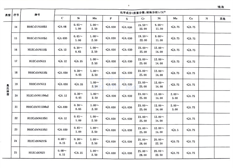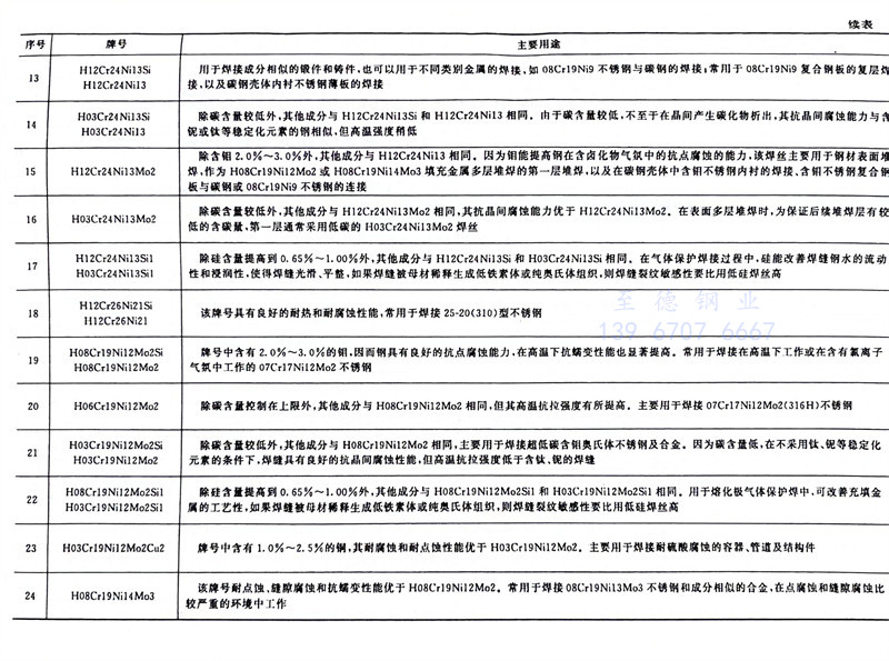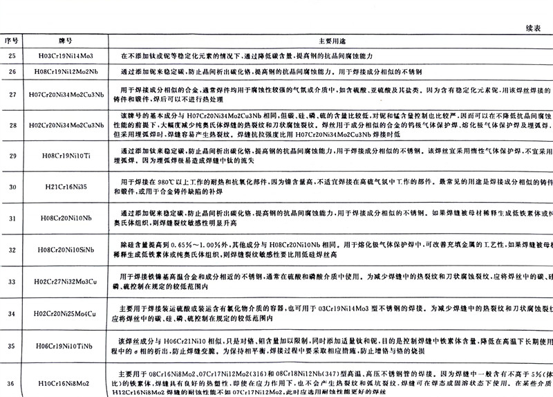 惰性氣體保護焊接時焊接區的金屬不會被氧化,所以焊絲熔化后化學成分基本不變,即焊縫金屬的化學成分就是焊絲的化學成分。焊接時要選擇與母材化學成分接近的焊絲,焊絲的化學成分見表2-17,不銹鋼壓力容器焊接用實心焊絲的選用見表2-18、表2-19。各牌號實心不銹鋼焊絲的主要用途見表2-20。非重要件焊接用焊絲可從不銹鋼母材截取板條作填充材料。對鋼棒直徑、鋼絲直徑和鋼絲盤內徑均有一定的要求,分別見表2-23~表2-25。其中鋼絲直徑和鋼絲盤內徑是氣體保護熔化極焊接方法提出的特殊要求。鋼棒長度為1000mm,允許正偏差≤50mm。鋼絲應規整,不得散亂或成“o”字形。