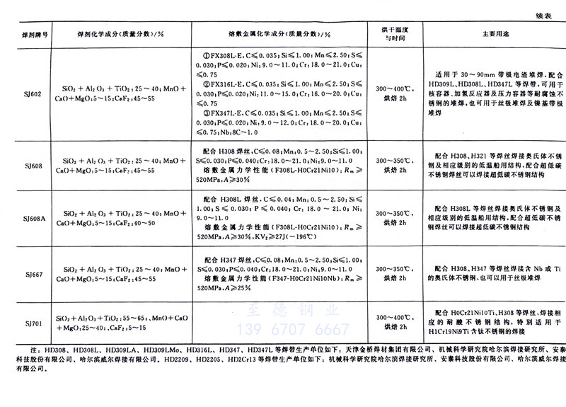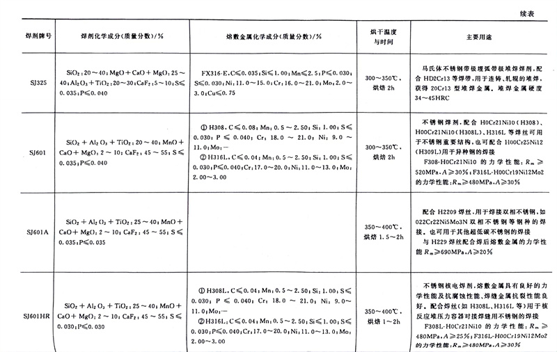 不銹鋼埋弧焊用熔煉焊劑的牌號和(he)主(zhu)要化學(xue)成(cheng)分及主(zhu)要用途(tu)見表2-45。