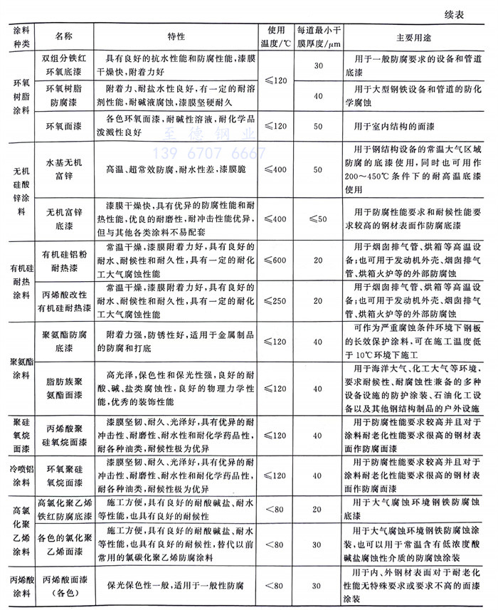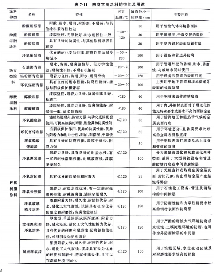 壓力管道防腐常用(yong)涂(tu)料的性能及用(yong)途見表 7-11