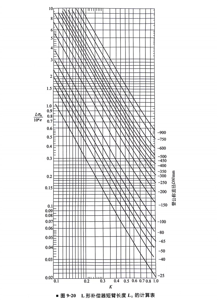 L形補(bu)償(chang)器(qi)如圖9-19所示(shi),其短臂(bei)(bei)L2的(de)(de)長度(du)(du)可按(an)下式(shi)計(ji)算。L形補(bu)償(chang)器(qi)的(de)(de)長臂(bei)(bei)的(de)(de)長度(du)(du)不應取(qu)的(de)(de)太長,否則會造成短臂(bei)(bei)的(de)(de)側(ce)向(xiang)移動(dong)量過大。