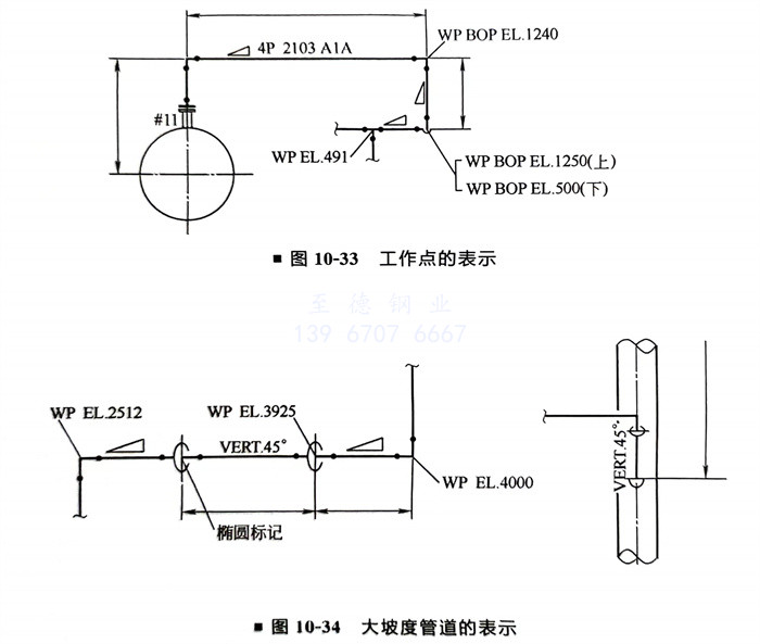 ⑩. 在坡度管(guan)和重力流管(guan)線要控制標高時,應以(yi)“WPEL”(工作點標高)表(biao)示。