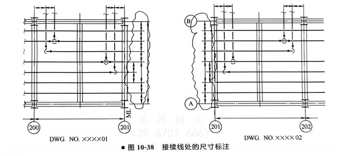 c. 與其他圖相接的(de)管(guan)線,在(zai)接續(xu)線處的(de)尺寸在(zai)每張圖上以同樣(yang)的(de)方(fang)法表示(圖10-38)。