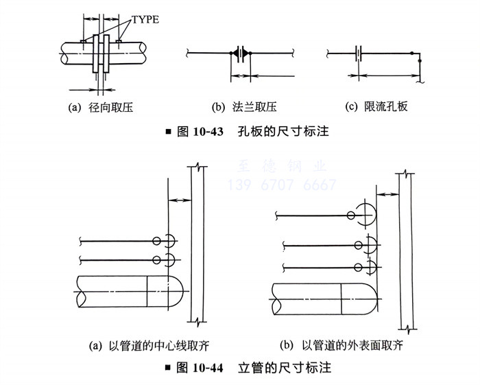 ⑩. 立管的尺寸標注如圖10-44所(suo)示(shi)。