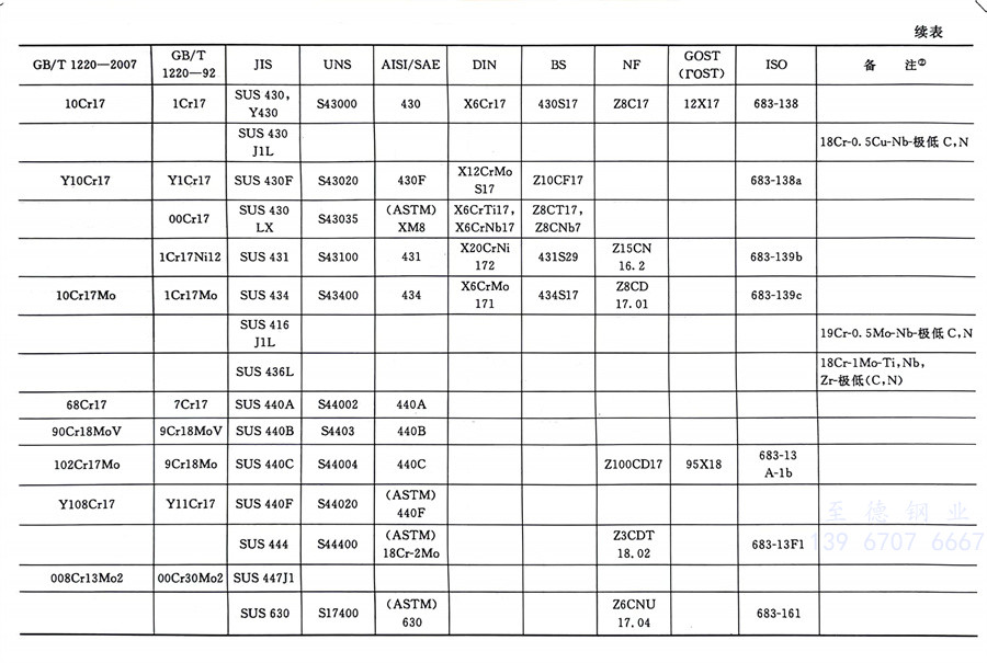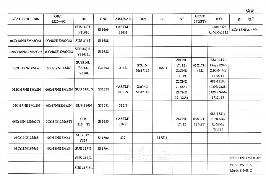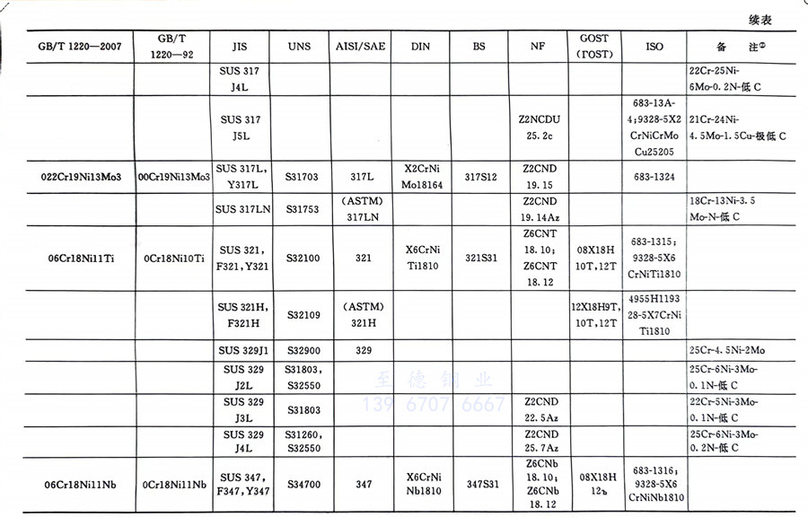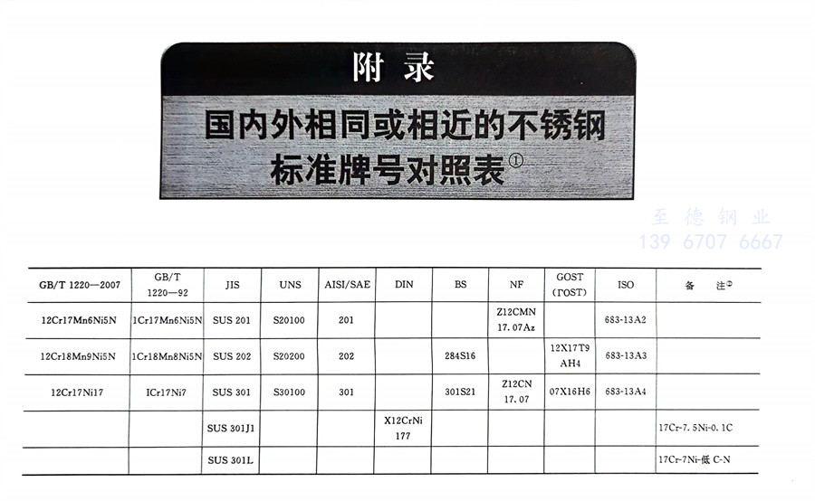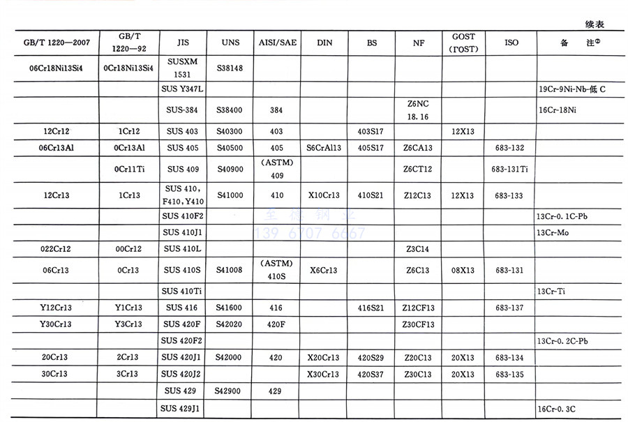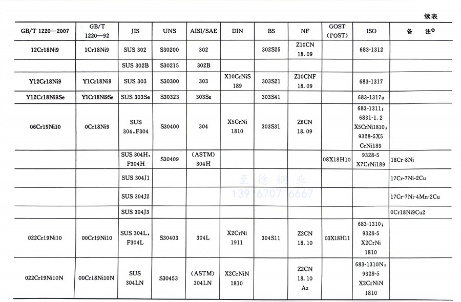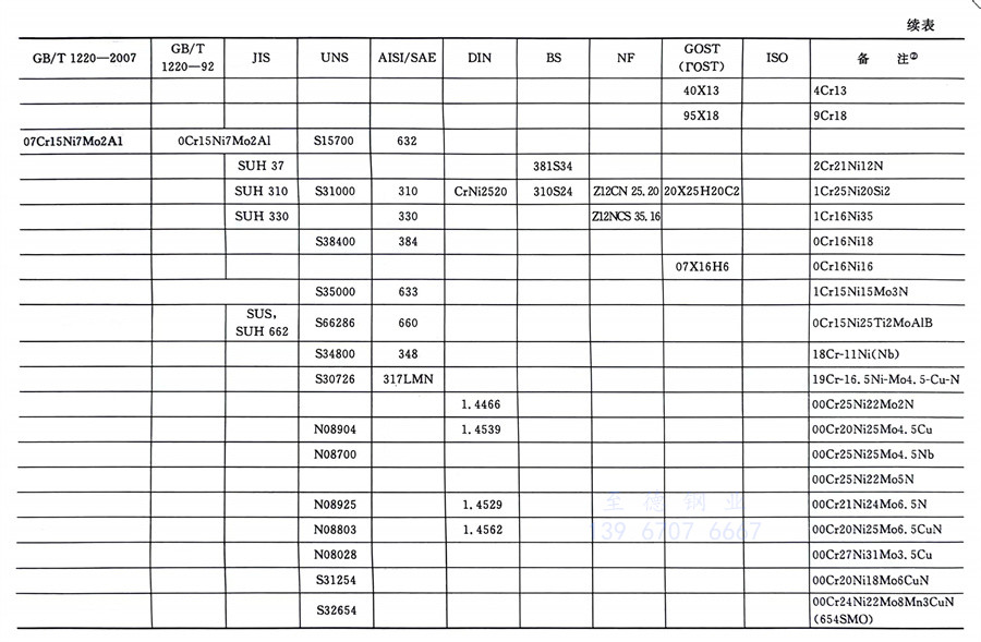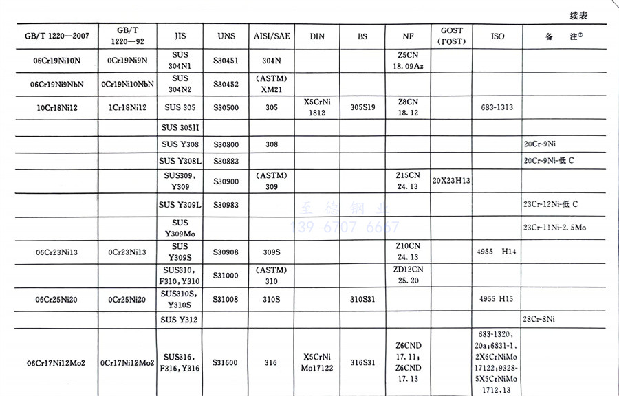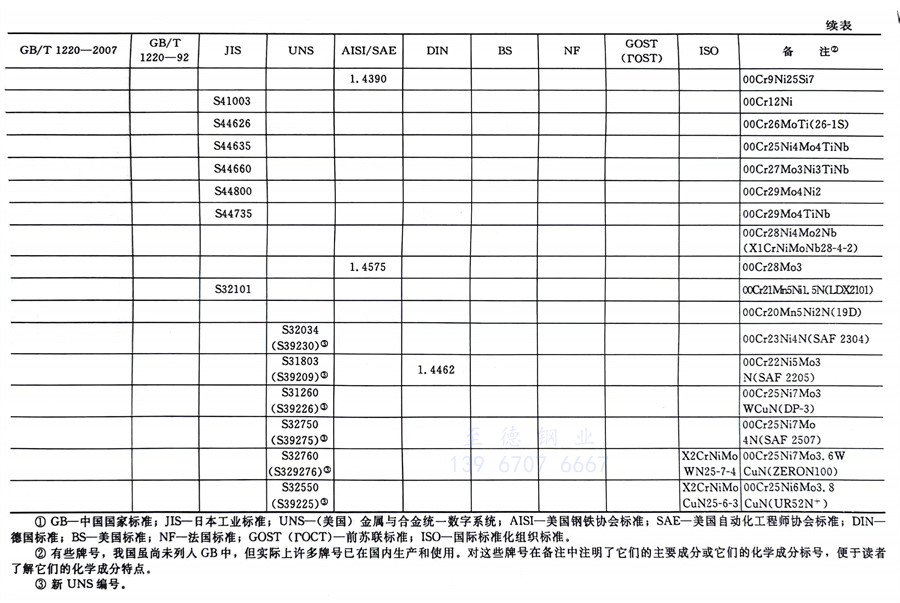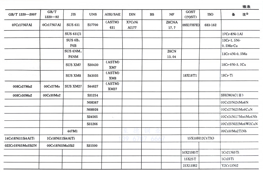 國內外相同或相近的不銹鋼標準牌號對照表(國標GB、日標JIS、美標UNS,SAE,AISI,ASME、德標DIN、英標BS、法標NF、俄標GOST、國際標準ISO)