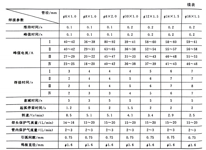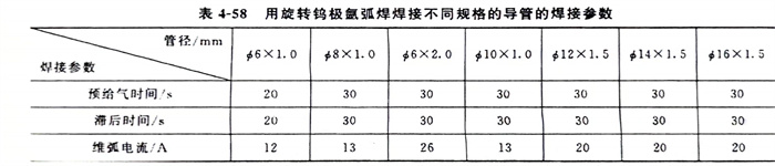 焊(han)(han)接(jie)參(can)數對焊(han)(han)接(jie)質量的影響頗大,其(qi)中峰值(zhi)電流(liu)在(zai)每個焊(han)(han)接(jie)區域(導(dao)管固定不動(dong),焊(han)(han)接(jie)分上、下、左、右4個區)的變(bian)化(hua)值(zhi)、引弧間隙、氣體(ti)流(liu)量、鎢極(ji)直徑等(deng)參(can)數變(bian)化(hua)的影響較(jiao)為突出。經過(guo)一系列(lie)的焊(han)(han)接(jie)工藝試驗得出如表4-58所示的數值(zhi)。