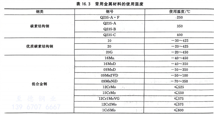 常用金屬(shu)材(cai)料的使用溫(wen)度(du)見(jian)表16.3