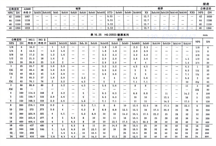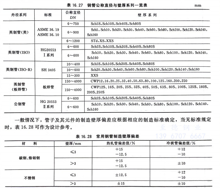 ①. ASME B36.10 和ASME B36.19壁厚系列見表16.24。