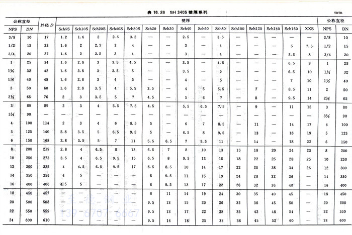 ③. SH 3405 壁厚系列見(jian)表16.26。