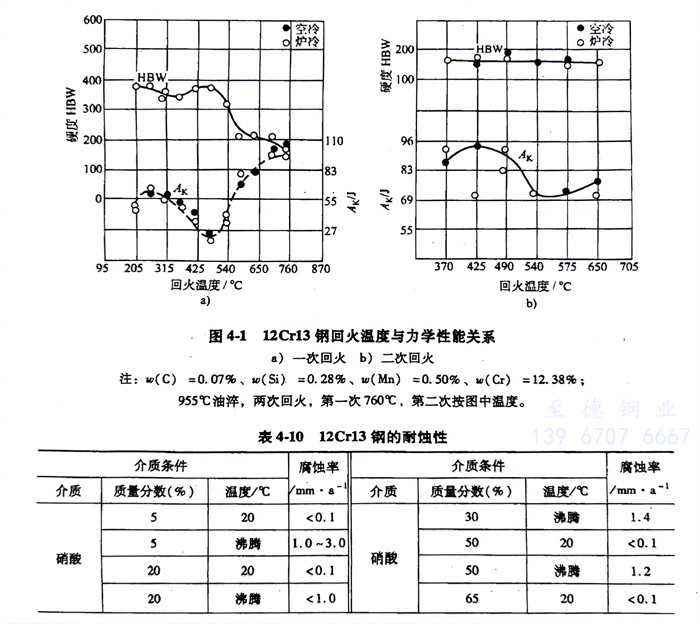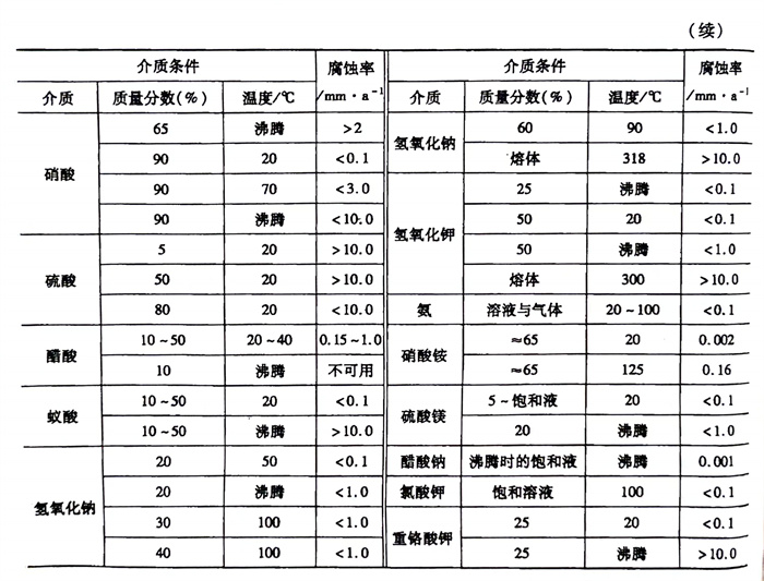 12Cr13 鋼具有不銹性,在室溫的(de)稀硝(xiao)酸及弱有機酸中(zhong)也有一定耐(nai)蝕(shi)性(見(jian)表4-10)。