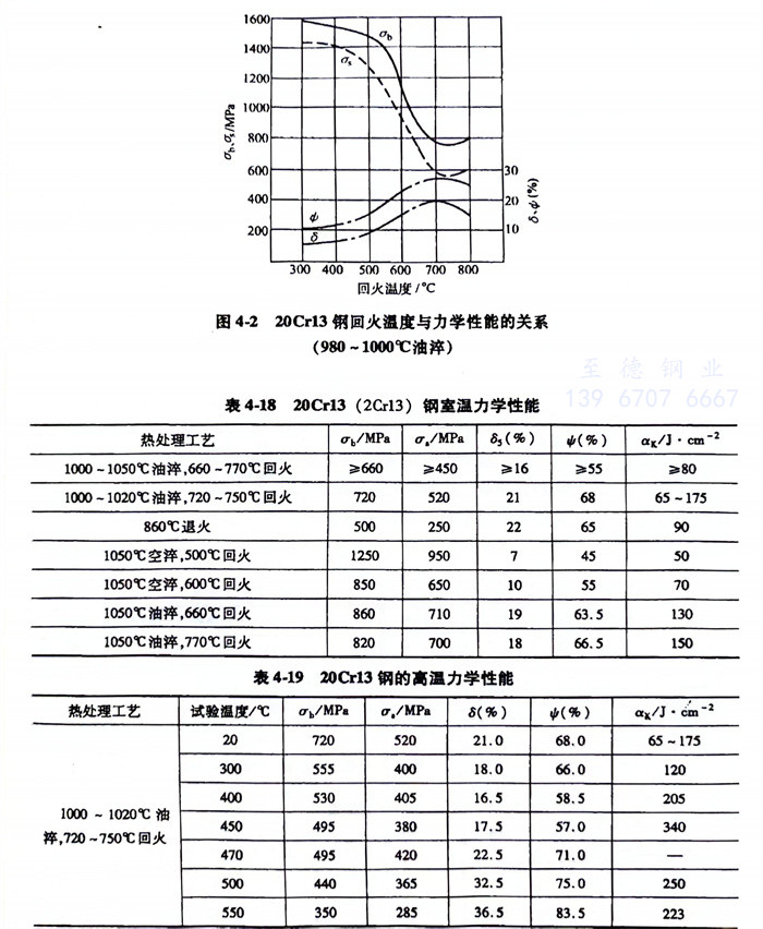 表4-17 20Cr13(2Cr13)420不銹鋼不同回火溫度的力學性能