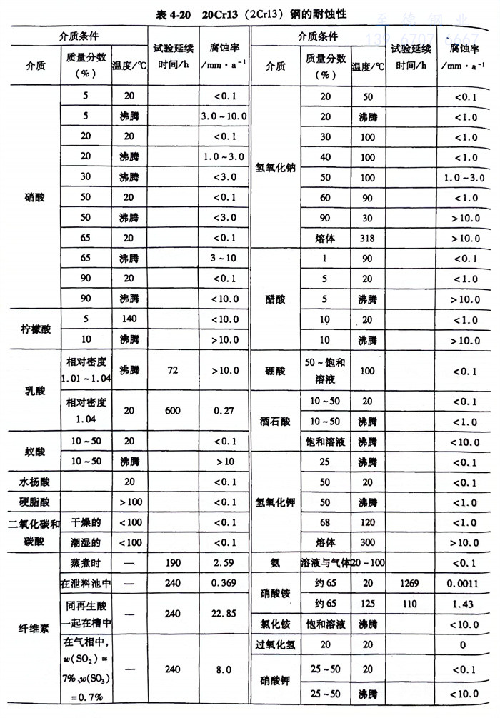 20Cr13(2Cr13)420不銹鋼(gang)的耐蝕性能見(jian)表 4-20