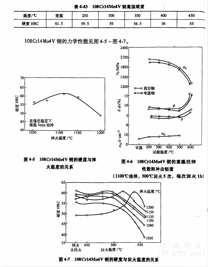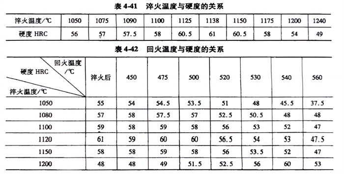 淬火(huo)溫(wen)度、回火(huo)溫(wen)度與硬(ying)度的關系分別(bie)見表4-41、表4-42。108Cr14Mo4V 不銹鋼高溫(wen)硬(ying)度見表4-43。